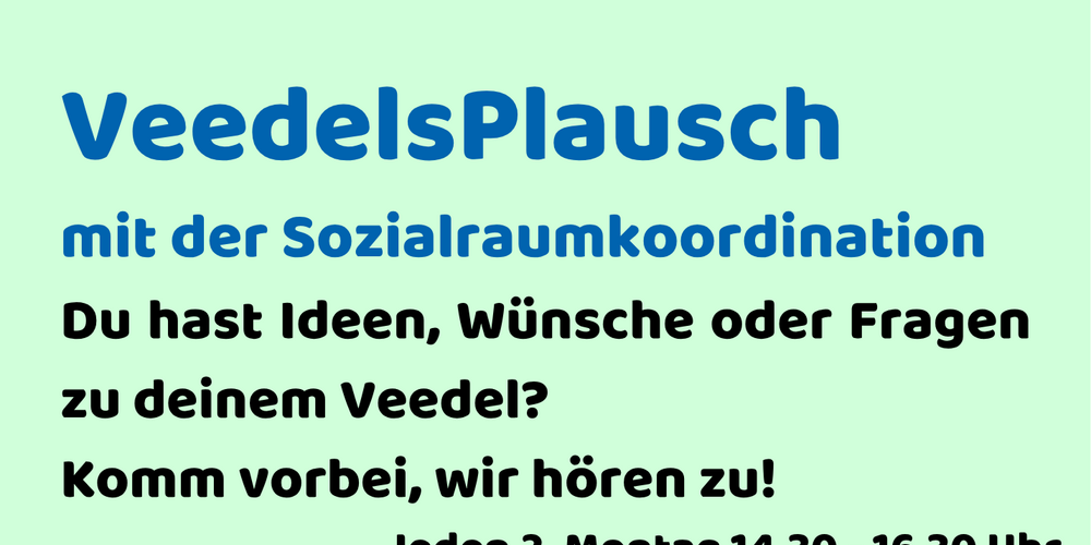 Du hast drei mal im Monat die Gelegenheit mit mir, der Sozialraumkoordinatorin, über Kalk ins Gespräch zu kommen!